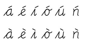'-table to join them to other letters. Some renderers such as Chromium will not fall back to a default font to show unsupported characters, but will use the OpenType positioning table to 'compose' these characters on the fly. Unfortunately, characters composed by the application do not connect to other characters and do not receive entry or exit strokes, and this effect is sometimes too subtle to spot. A few (as of yet) unsupported characacters to test with, are: Ǹ ǹ Ń ń