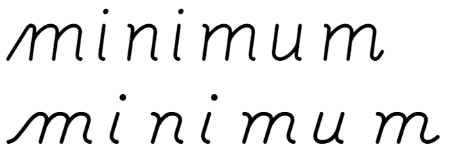 Cogncur (top) vs D'Nealian (bottom): if we make the joins invisible, we can see the letter spacing.