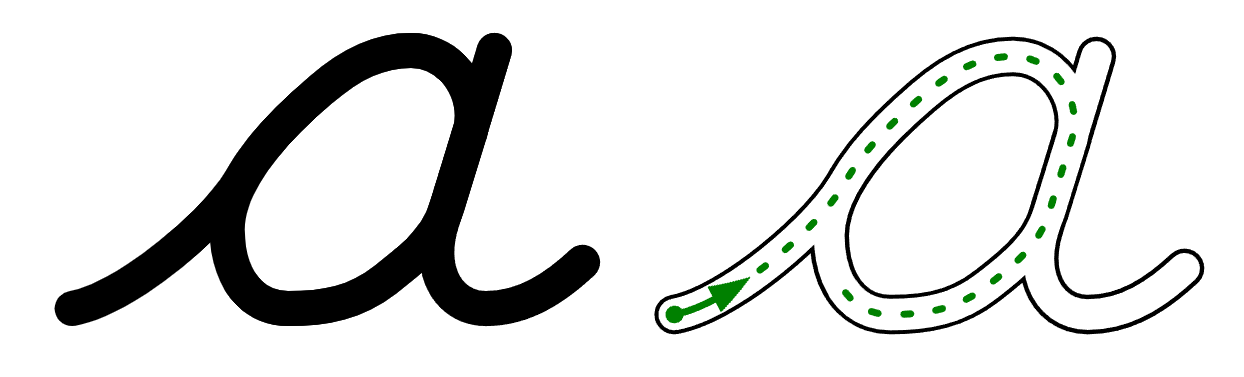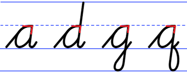 In the German and American cursive tradition, the counters of the letters a, d, g, and q have a round shape, just like in print. This is problematic in handwriting, not just because shapes with lots of symmetry can be hard to get exactly right, but also because a circle or oval does not have a defined starting point and can just as easily be written clockwise as anticlockwise.