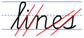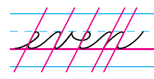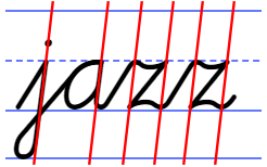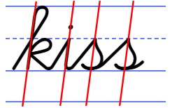 In the section on ellipses, we saw how Cogncur handles the implied slant of ellipses. The letters s and z also have an implied slant that lends itself well to analyzing and to explicit teaching, and which of course has been designed in Cogncur to be parallel to other letters.