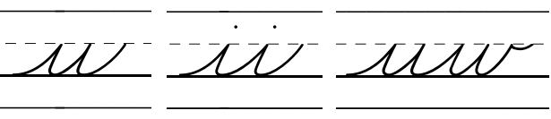 Zaner-Bloser: the text u ii uw in cursive. The undercurves inside the letters u and w look similar